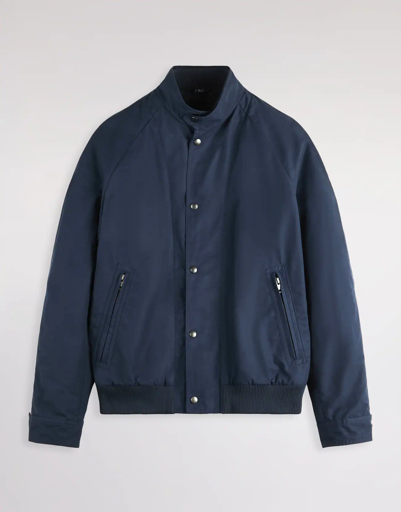Blouson bomber doublé à double fermeture éclair, manches raglan, col montant et ourlet côtelé. Ce modèle est confectionné en faille de coton et de nylon avec traitement déperlant.